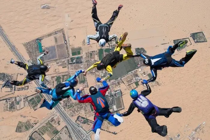 Details Photos Tour overview Experience the adrenaline rush of a lifetime with Skydive Dubai. Jump from a plane over the iconic Palm Jumeirah or desert landscapes, enjoying breathtaking views and an unforgettable free-fall adventure.